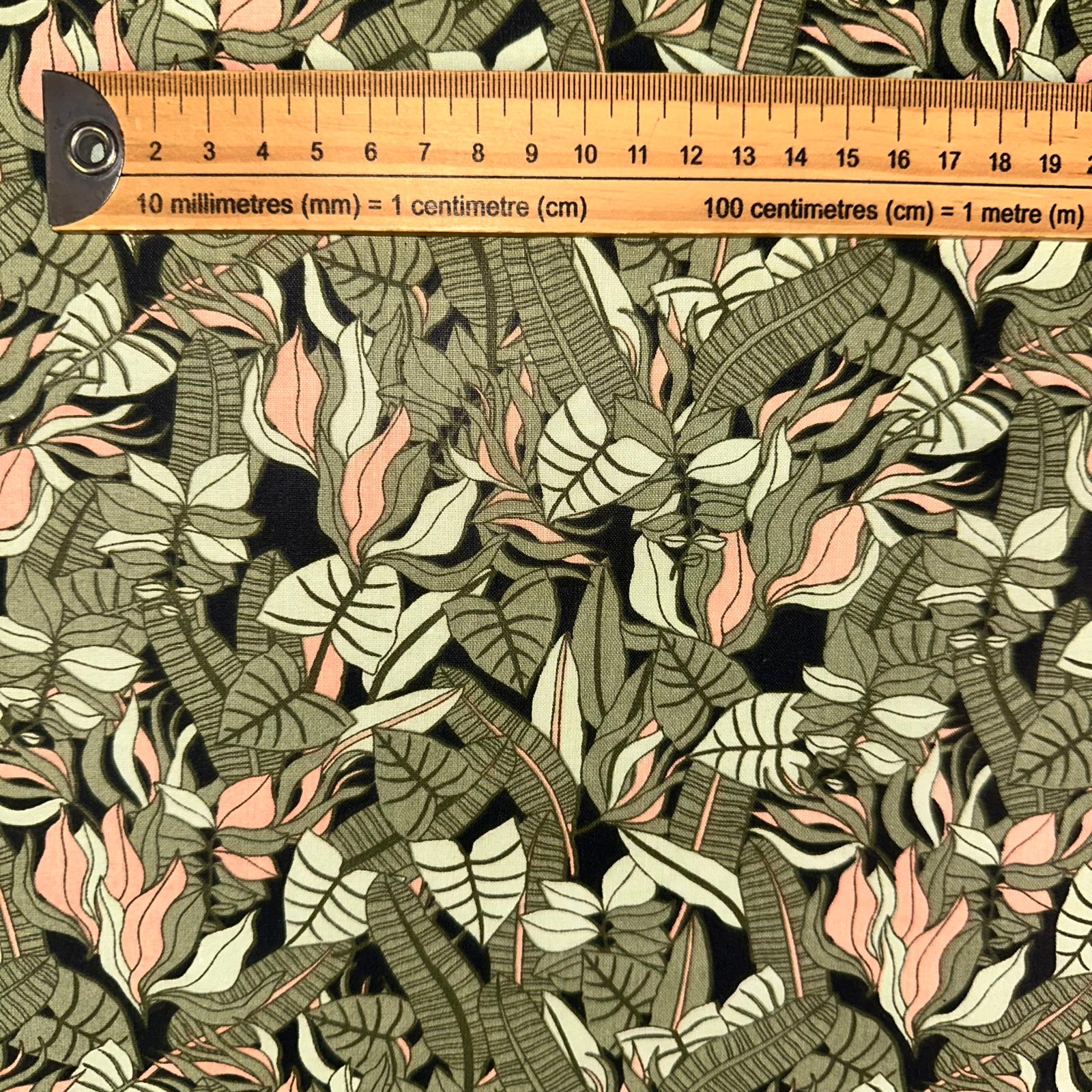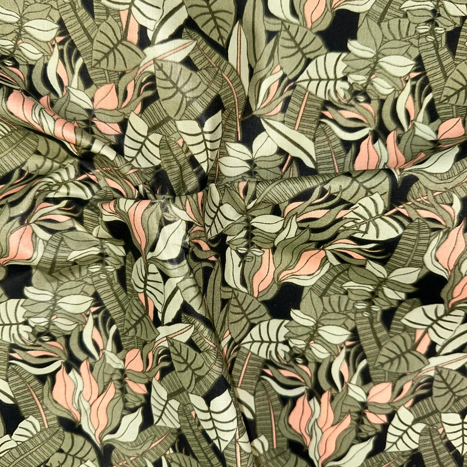 COTON IMPRIME Feuillage Kaki