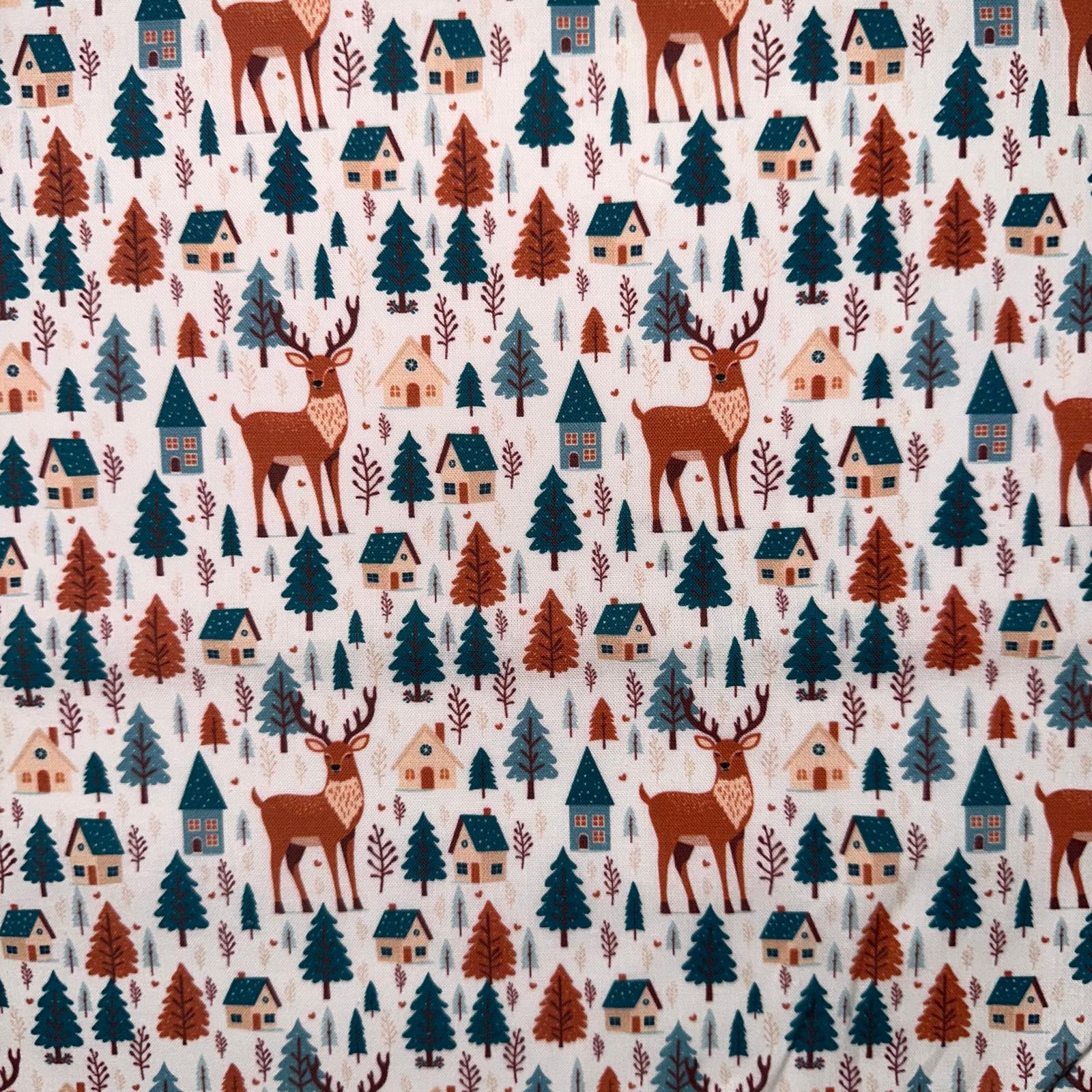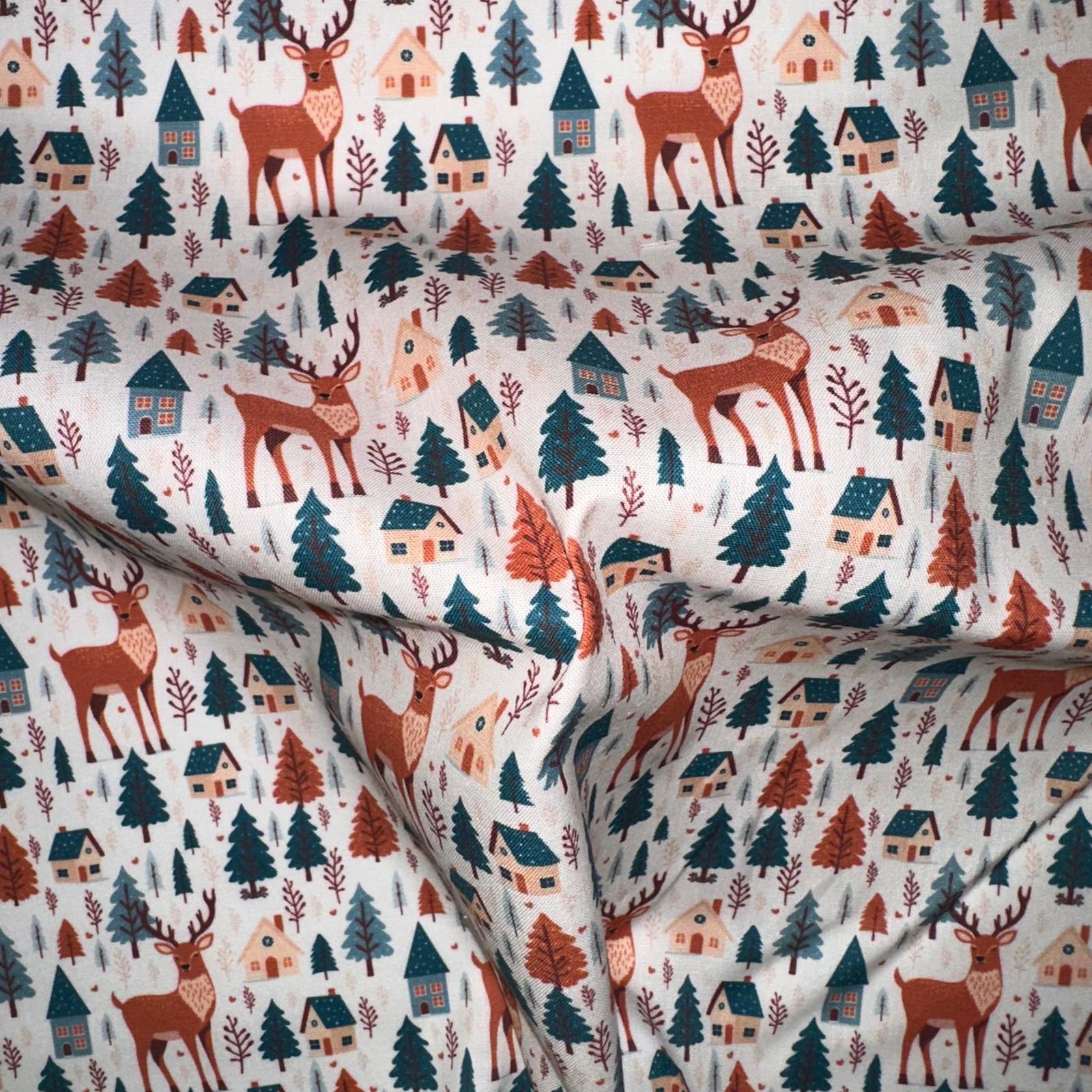 COTON IMPRIME Foret Village esprit Noel