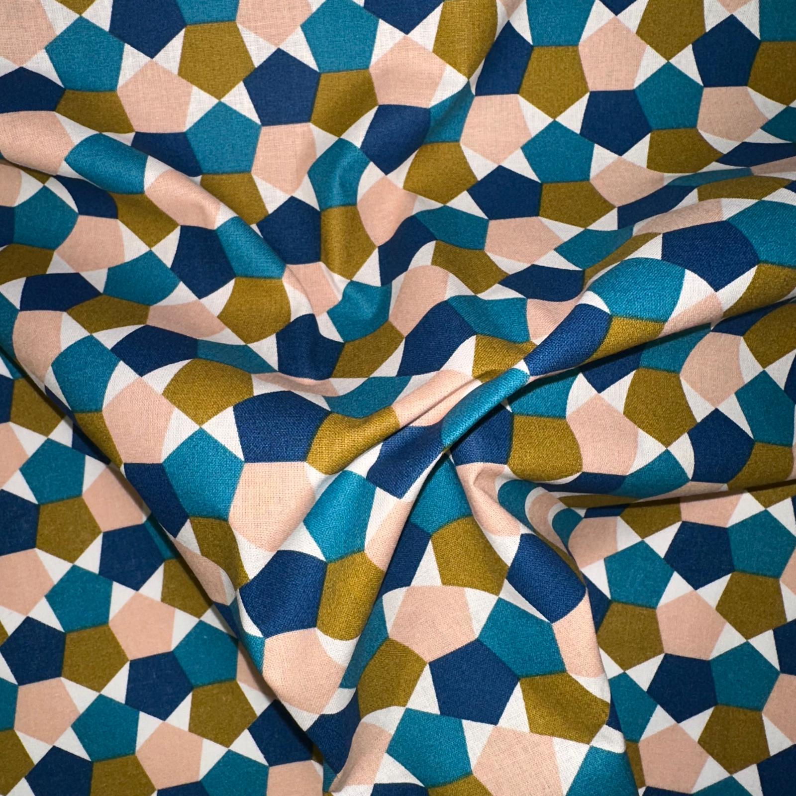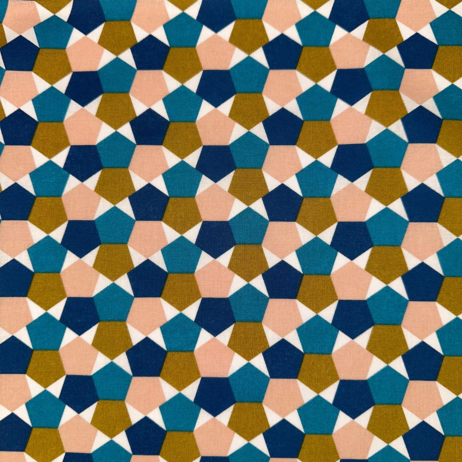 COTON IMPRIME Graphique Bleu Rose Moutarde