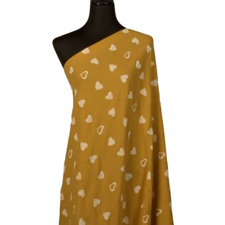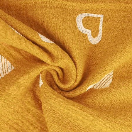 DOUBLE GAZE MOTIF Cœurs Moutarde Bi couleurs