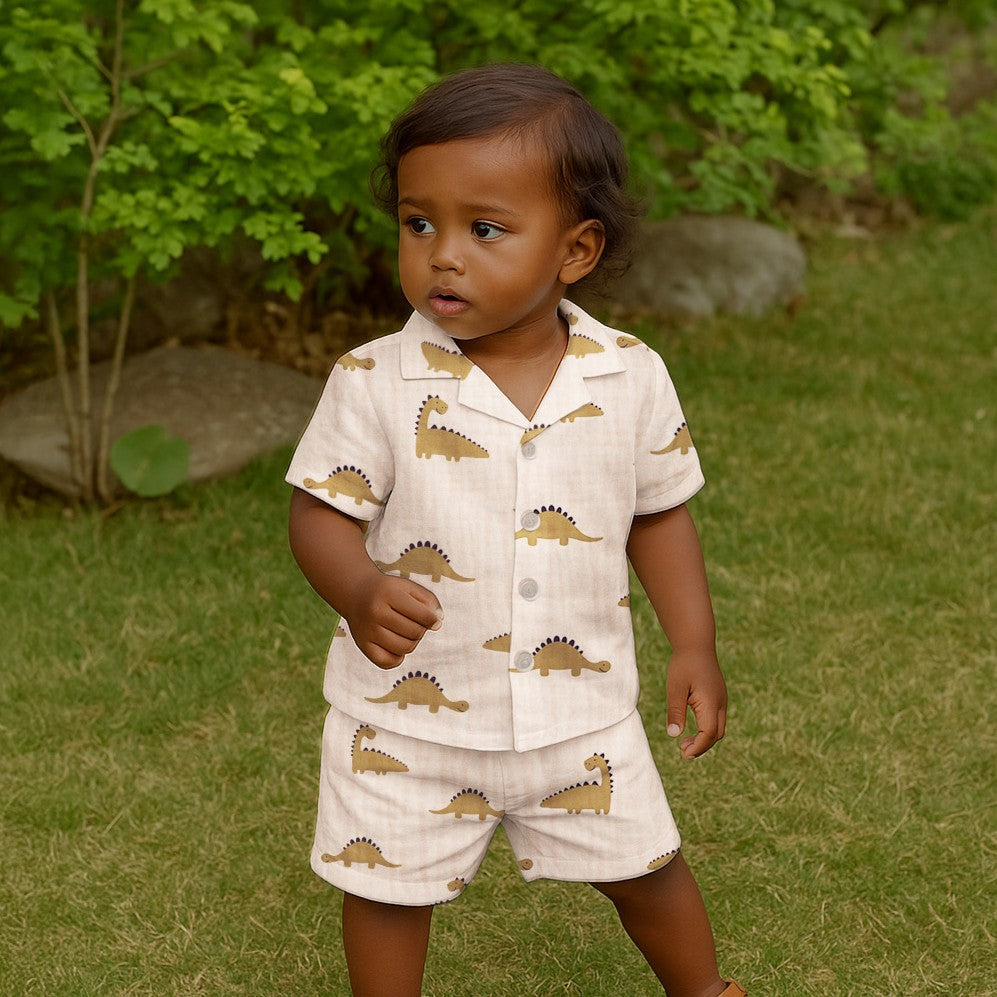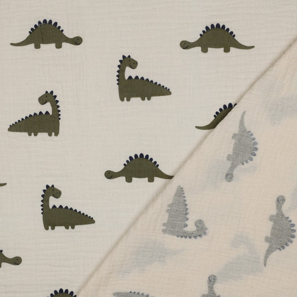 DOUBLE GAZE IMPRIMEE Dinosaure Kaki