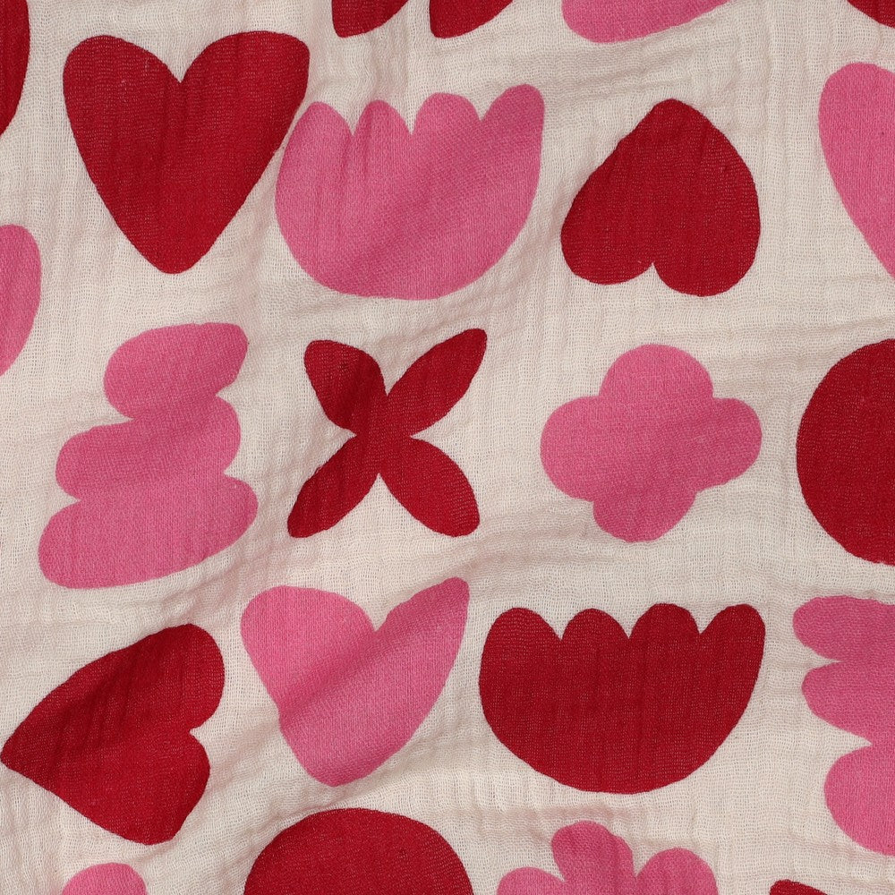 DOUBLE GAZE IMPRIMEE Formes Géométriques Rose Fuschia